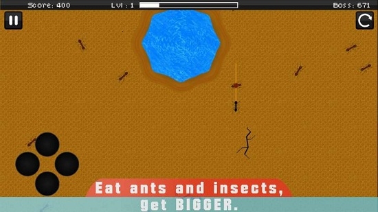 这款游戏的操作是非常简单的,可以在这里看到蚂蚁的成长,当然想要生存就需要不断增强自己的力量,甚至可以让和其他的昆虫进化成更强大的生物,在游戏中成为至高无上的存在,喜欢的快来试试吧!