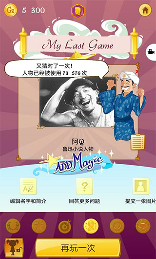 3、游戏是一环接着一环,最后游戏就会猜出你心中所想的人物是谁