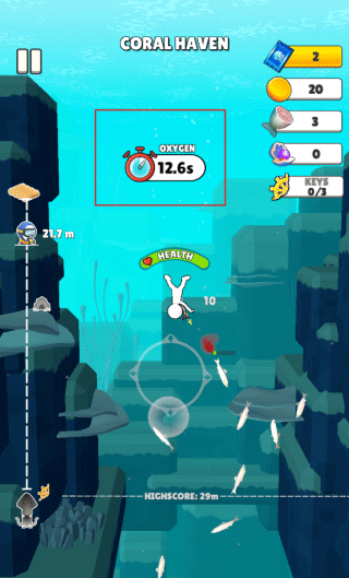 整个游戏的模式比较精彩,玩家也可以选择潜水道具来获得帮助。
