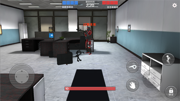 6、游戏开始后,顶部是倒计时,底部是自己的血量,受到寻找者的攻击会死亡;