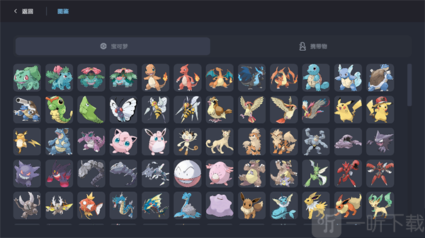 2、我们首先选择图鉴界面,在这里我们会看到各式各样的宝可梦以及具体的进化形态,随着游戏的深入,玩家可以将所有宝可梦一网打尽,组成最强大的阵容。
