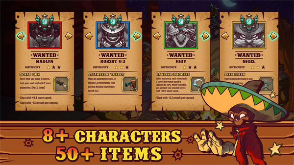 一个人的悬赏手游是一款偏休闲的肉鸽幸存者游戏。身为狂野西部的英雄,你被属下出卖、被通缉,简直是奇耻大辱!于是你选择拿起枪械在无穷无尽的怪物袭击和赏金猎人大军中存活下来,为了名誉而战,不死不休!