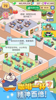 游戏带来了非常有趣的公司模拟经营玩法,在经营公司时还能与可爱的猫咪员工进行互动,充分治愈玩家的心灵,非常推荐下载游玩!