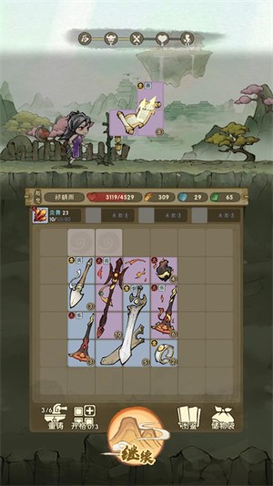 3.点击继续可以继续冒险来获得更多法宝,每完成一次战斗都可以获得新的宝物。