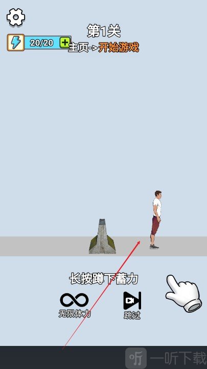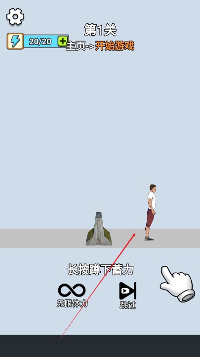 3.蹲下蓄力,控制角色跳跃,成功翻过目标物品视为挑战成功。