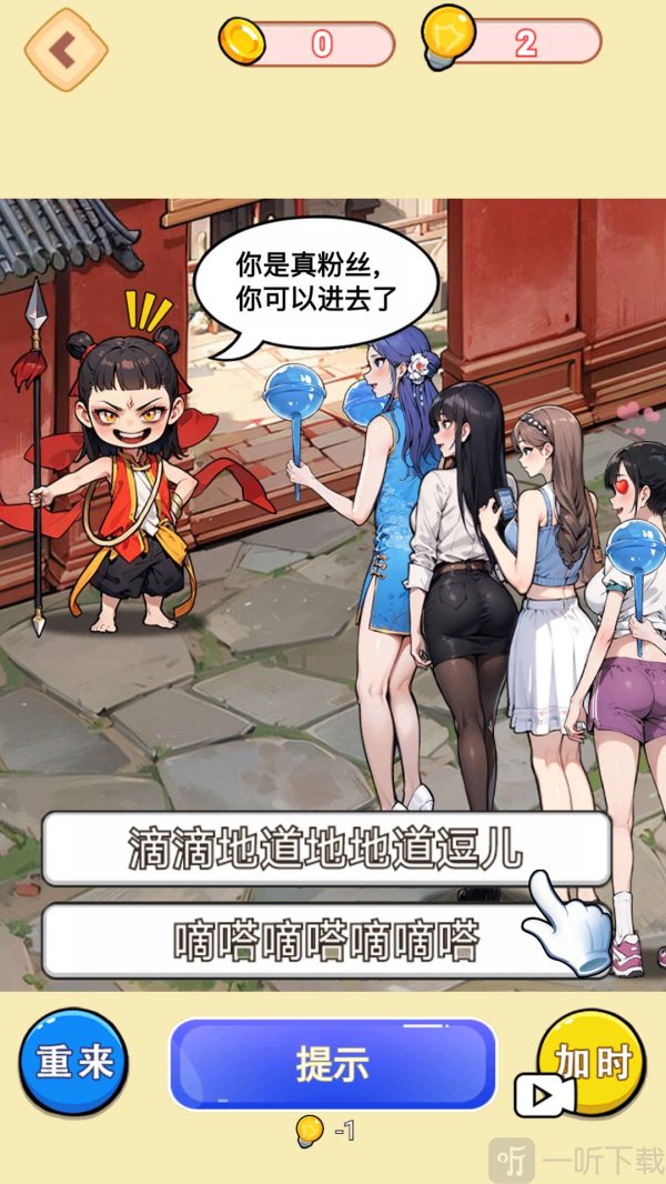 3.如果对于闯关结果不满意,你还可以随时点击重来的键重新挑战。