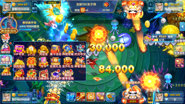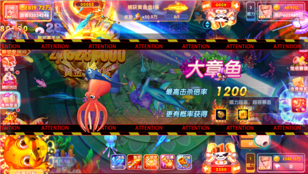 升级炮台:高等级炮台提高攻击力和金币收益,轻松击杀鱼种,累积百亿金币不再难。