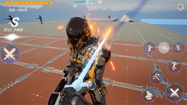 1. 跑酷与刀砍玩法的完美结果,在高速跑酷的高节奏下载斩杀一路上的机器敌人。