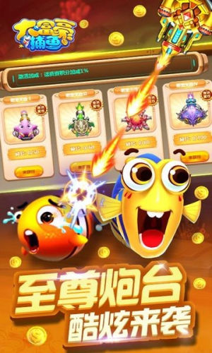 升级炮台:捕获鱼类获得金币,炮台等级越高,收益越丰厚。