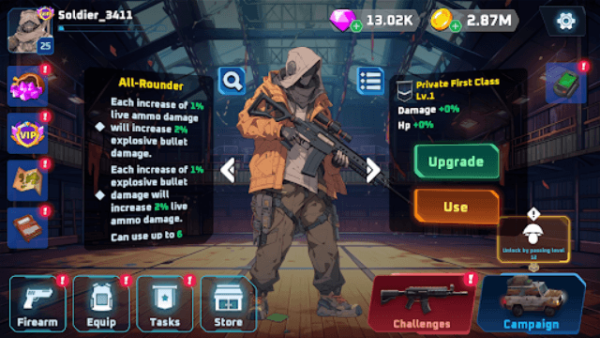 2. 一些技能升级到指定等级还会发生变化,例如普通1级用枪,10级就用冲锋枪。