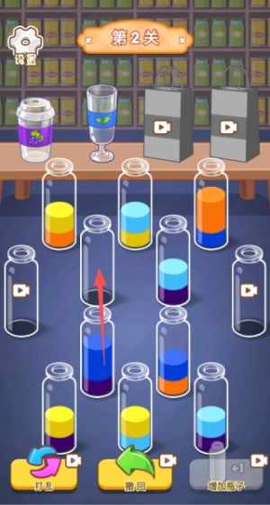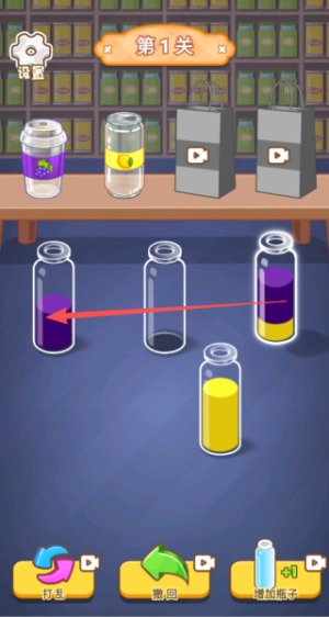 1.从简单的单层颜色液体开始整理,比如先处理只有紫色或黄色等单一颜色的液体,再逐步应对多层颜色的瓶子。