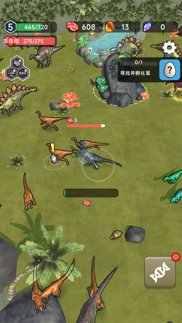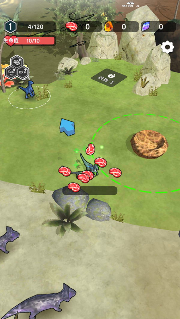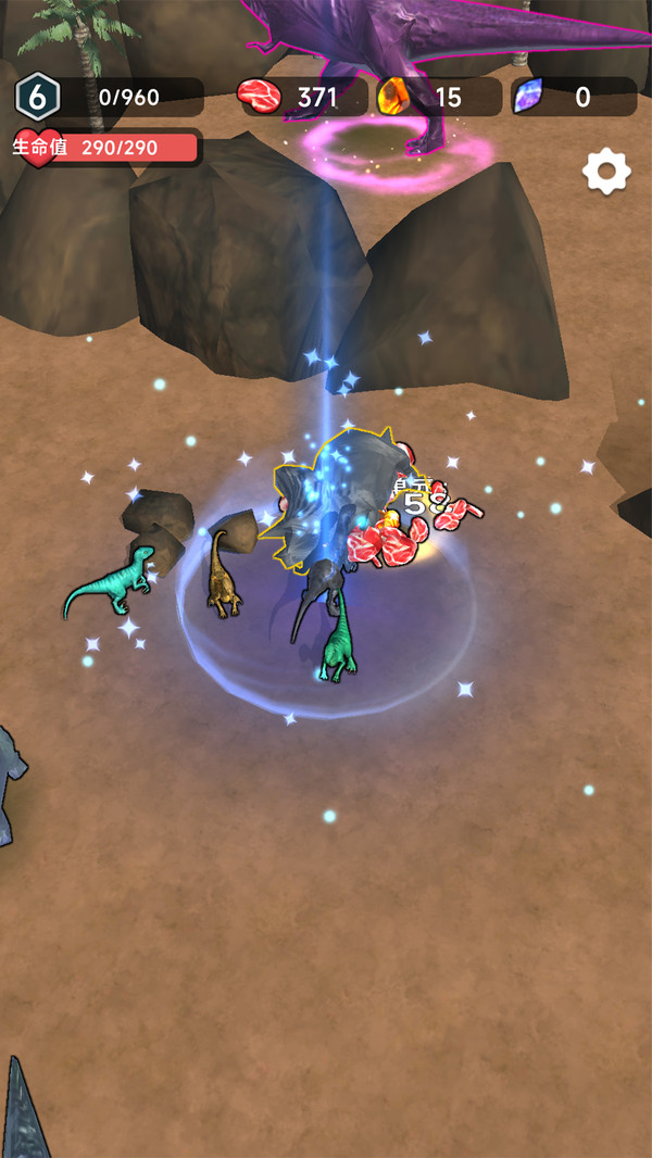 2.击败敌人、完成任务可获得肉,用于孵化新的霸王龙。