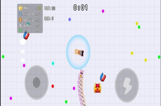 2.随机道具助力进化,吞食过程中会出现加速、隐身等道具,合理使用可快速提升体积,轻松应对复杂场景,增加闯关优势。