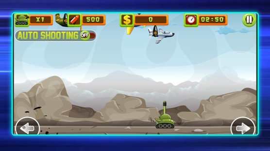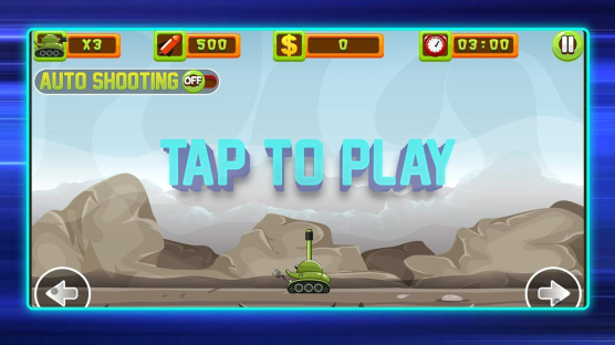1.我们点击左右两边的按钮控制坦克移动,然后点击屏幕就可以射击了。