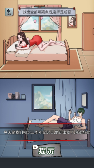 游戏可以让玩家转动思维来思考该场景下的诡异之处,通过了解每个规则的漏洞来找出画面里不和谐的地方,有兴趣的可以下载体验!
