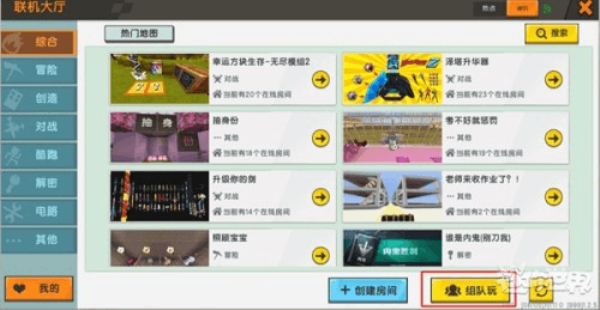 玩家进入联机大厅后,会发现下方有个【组队玩】的按钮,这个就是组队功能啦,点击后就会进入组队界面哟!
