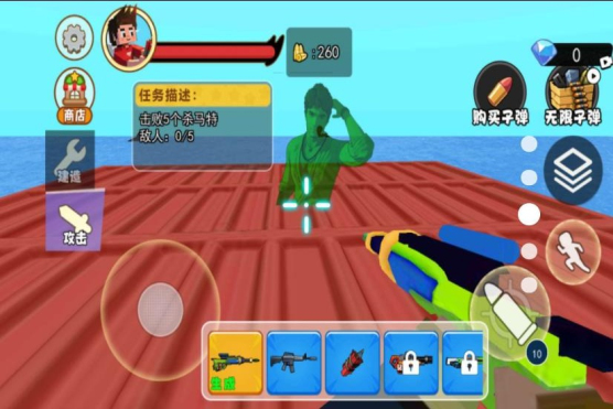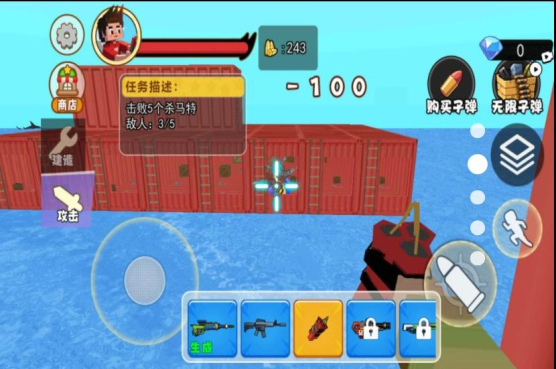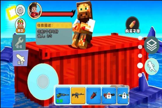 2.选的是海上集装箱生存,你可以用虚拟摇杆控制着角色在海上去击杀杀马特。