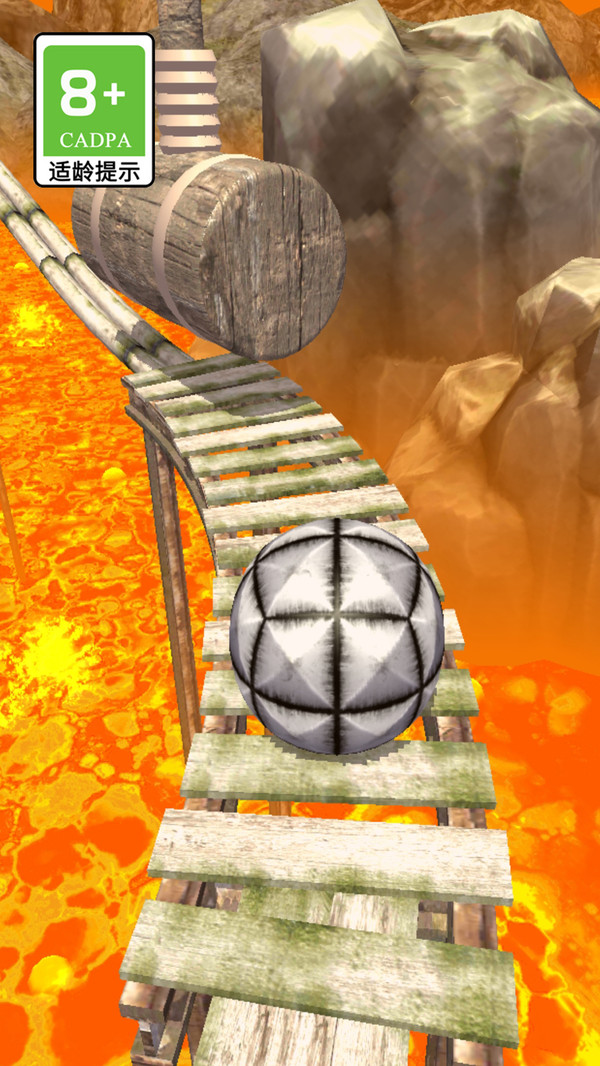 1.玩家需通过滑动屏幕的虚拟摇杆来精准控制球球方向,避开陷阱完成跨桥挑战,成功通关需全神贯注。