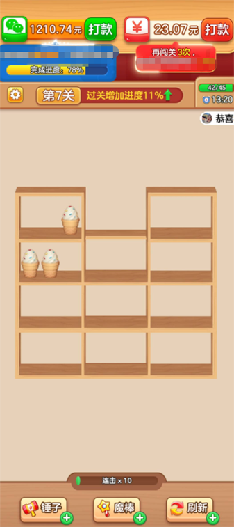 3.等级升高后,你还能解锁更多的货架位置,大幅度的提升闯关效率。