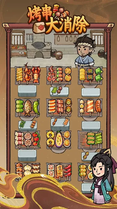 烤串大消除是一款以烹饪为主题的休闲消除游戏。你将扮演烤串师傅,在热闹的市集中,通过交换与匹配食材,制作美味烤串。游戏玩法简单直观,乐趣十足。