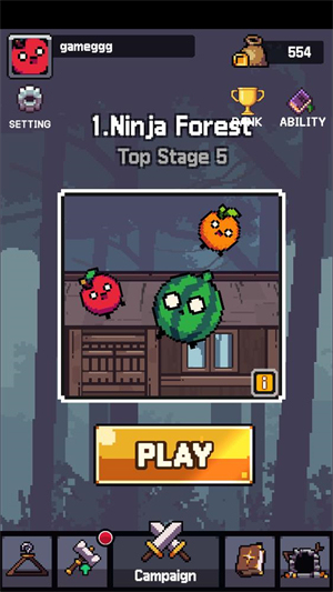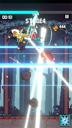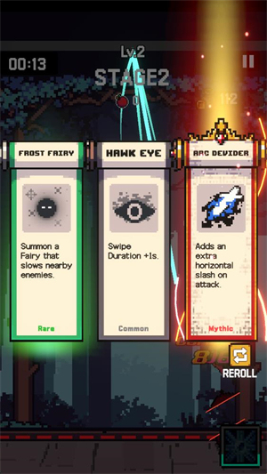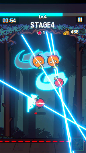 3.  当切开水果后就会获得经验,经验满后可以升级获得技能,玩家可以选择一个来强化自己。