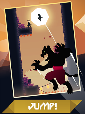 1. 操作简单直观,通过点击与滑动就能控制忍者跳跃与移动,滑动释放后忍者会跃向空中,易上手也容易沉浸。