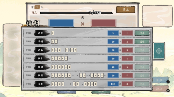 5、点击左下角的牌型,在这里玩家可以查看各种可以打出的牌型;