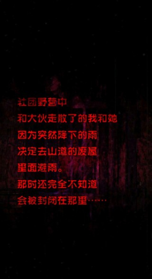 第一种结局:出门后用伞把门卡住然后把妹子救出来,你回到营地忘记妹子,妹子消失。是fin结局。