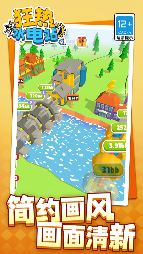 狂热水电站游戏是一款轻松易上手的休闲手游,你将通过建造和升级水车来发电去为村庄和城市提供源源不断的电力。游戏结合放置收益与策略建造,让你既能轻松挂机赚钱,又能通过扩展河道和发电设施打造宏大的水电站,沉浸式享受建造与成长带来的无限乐趣。