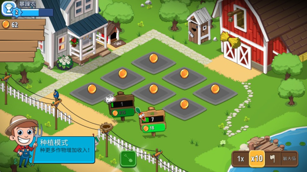 2. 农场升级与扩张进阶,随着收益增长可解锁新地块、动物和道具,让你的农业帝国逐步壮大。
