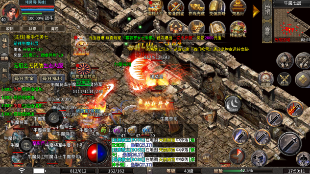 1.经典的复古传奇玩法给玩家带来了熟悉的感觉,战、法、道三大职业,任你选择,每一个职业都有专属的技能和属性。