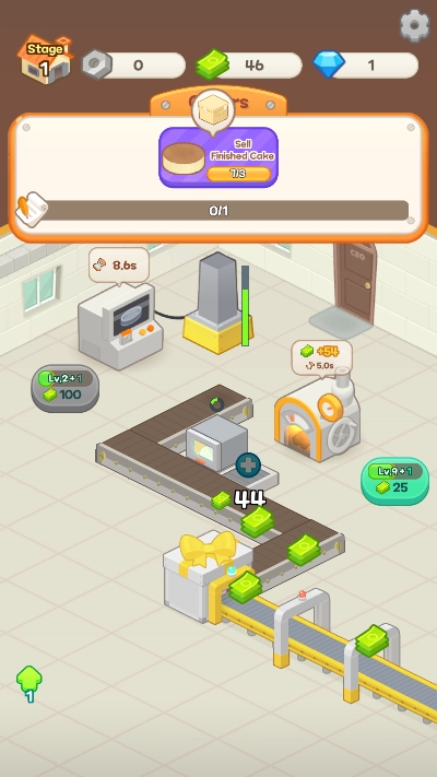 1.玩家利用游戏中获得的各种收益,不断的完善自己的蛋糕制作机器,以及自己的工厂。