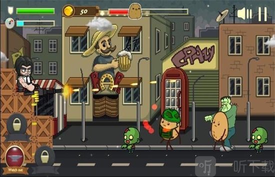 1.游戏玩法很简单。玩家只需要轻按屏幕即可使用武器对抗僵尸。