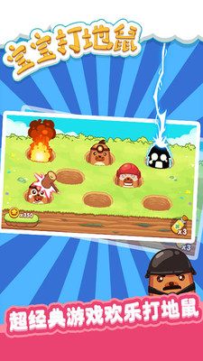 宝宝打地鼠是一款好玩有趣的益智休闲小游戏,可以很好的锻炼孩子的反应能力和手眼协调能力,清新可爱的卡通游戏画面和游戏场景,游戏玩法非常的简单有趣,利用不同的游戏道具,帮助玩家可以不断的闯关,更多的趣味关卡。