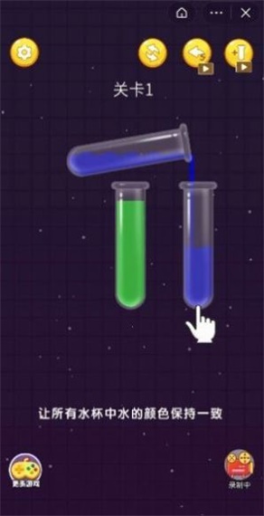 1.在这款超轻松的游戏氛围中,你可以快速地利用自己的一些技巧来倒满各种试管。