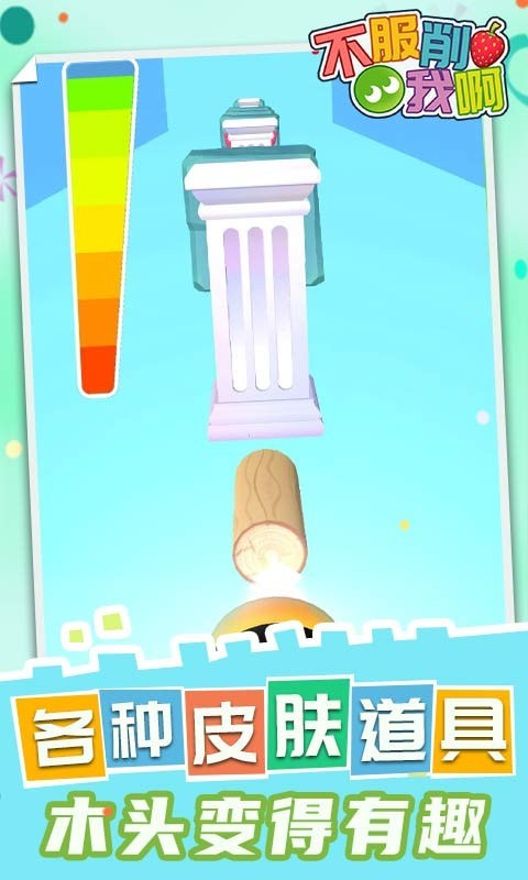 不服削我啊手游是关于削木头的休闲益智类游戏,精彩丰富的游戏关卡难度是依次上升的,一定不要让自己的节奏打乱,才可以让你不断的完成,需要做的就是要将每一个关卡里面的木头削得非常漂亮,难的关卡速度会比较快一些,这个时候你的反应力就需要更加敏锐。