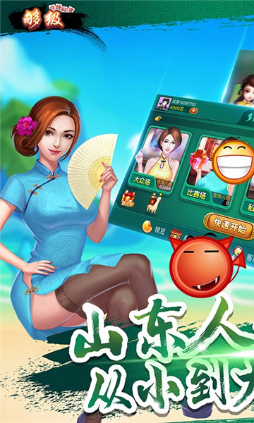 6副牌带鹰、6副牌够级、开点发4、大王2杀1、经典普够、青岛普够,各类地道山东玩法一应俱全!多数玩法设有进贡场,点烧闷落,快来体验够级乐趣!
