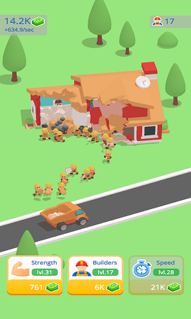 人群拆迁队这款游戏里拥有非常多魔性的玩法,玩家可以邀请身边的小伙伴一同在游戏中进行尝试体验高自由的游戏操作玩法,玩家在进行游戏拆除的过程中,也要通过合理的拆除策略来提高在游戏中房屋拆除的工作效率,游戏里还有大量精彩的爆破任务带给玩家无穷无尽的游戏快乐。
