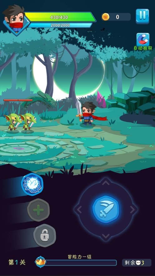 1.主角可以改变十多个不同的服装,杀死怪物并投下金币,升级武器和装甲以挑战更高的等级。