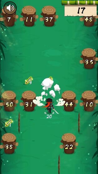 2.滑动手指,控制忍者左右移动,并将前方障碍打破,打破越多障碍得分越多;
