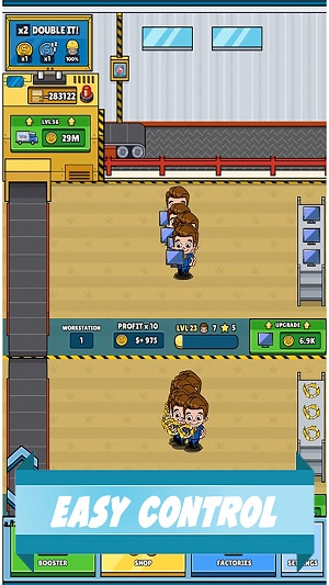 1.卡通和有趣的游戏图形,在这里管理您的工厂以执行一系列工厂生产任务。